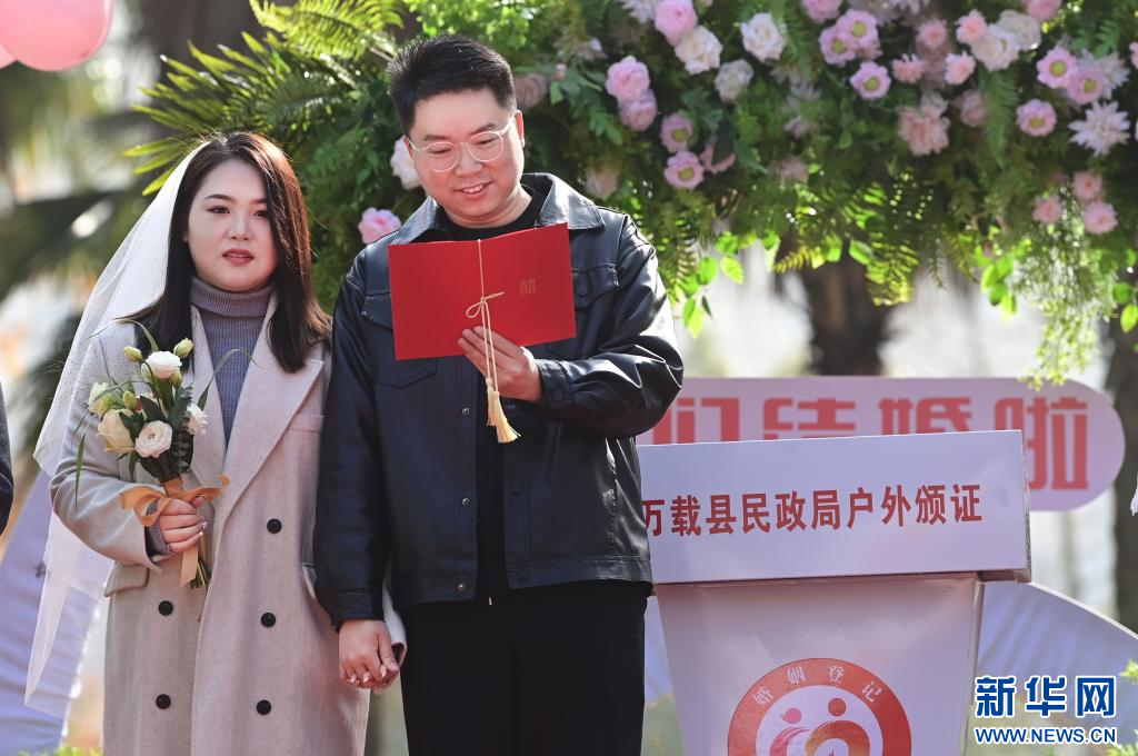 近日,江西省万载县举办“不要彩礼要幸福”户外集体婚礼,引导广大青年和家庭树立正确的婚恋观,让婚姻回归幸福本质。