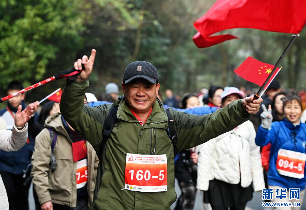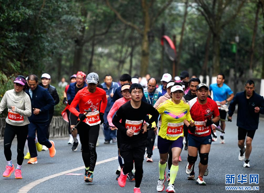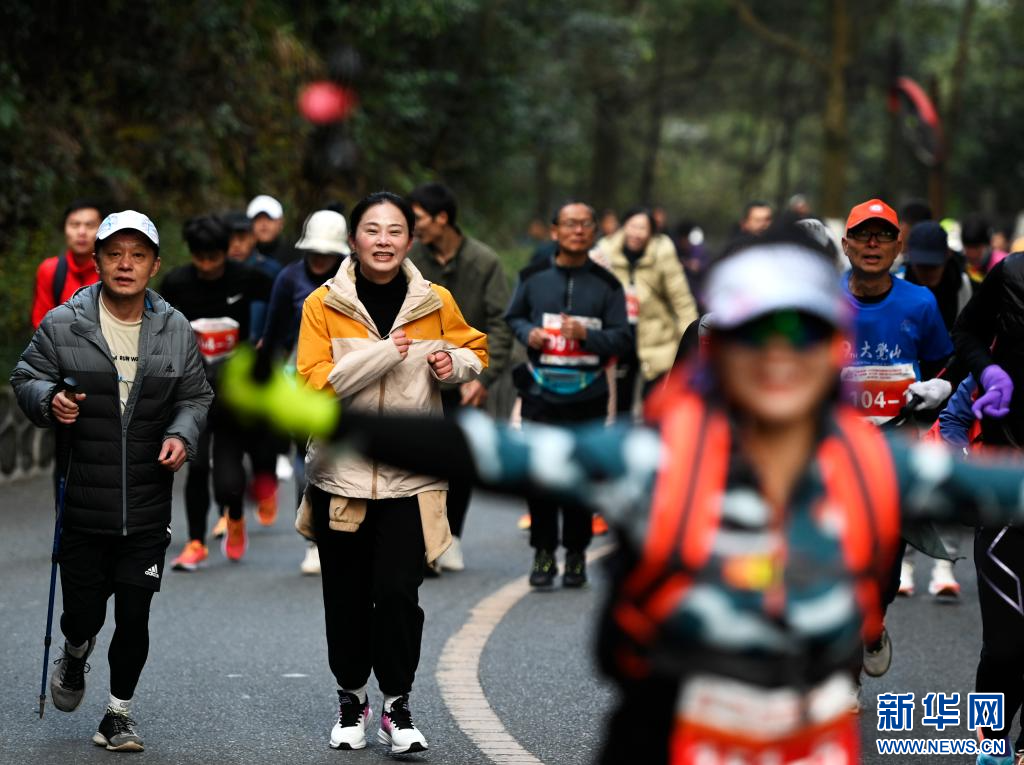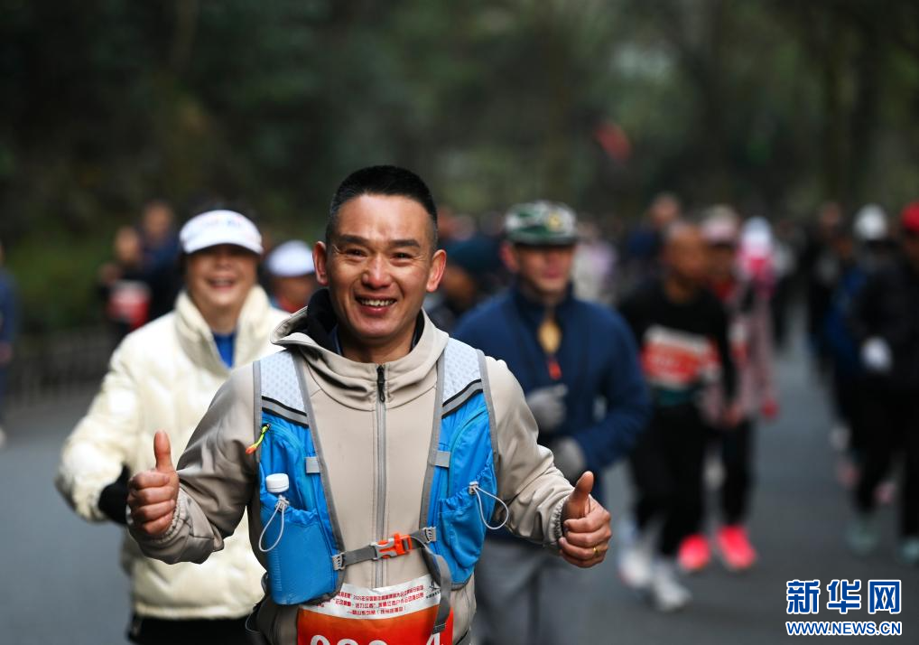 2025年1月1日,参赛选手在江西省抚州市资溪县大觉山国家5A级景区内进行登山比赛。新华网发 吴志贵 摄