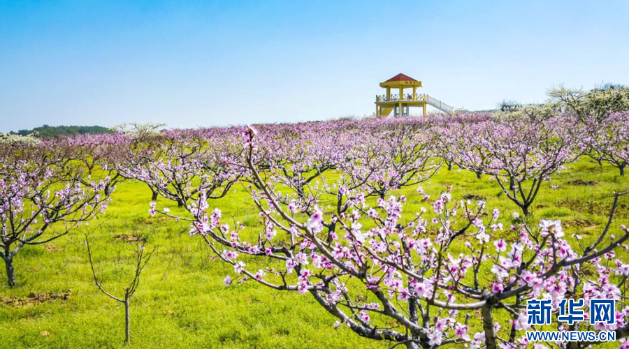 凤凰山桃花园内,连片的桃花竞相绽放,将这里装点成花的海洋。新华网发
