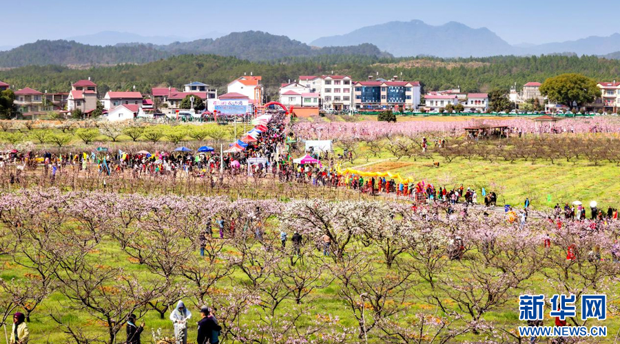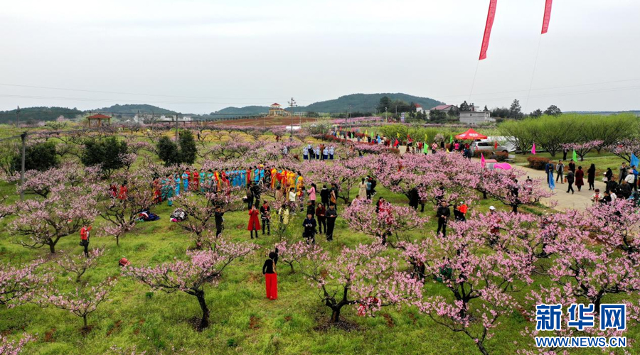 三月桃花盛开,吸引众多游人前来赏花游玩。新华网发