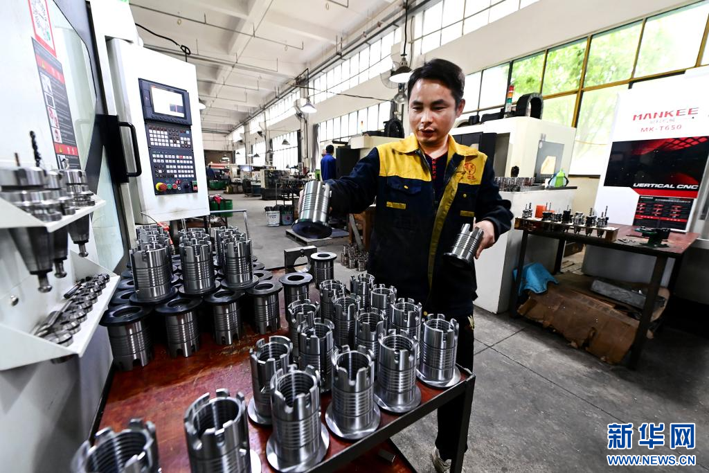 近日,在江西省宜春市万载县马步乡招商引进的锐腾模具制造企业,工作人员在车间检验订单产品。新华网发 邓龙华 摄