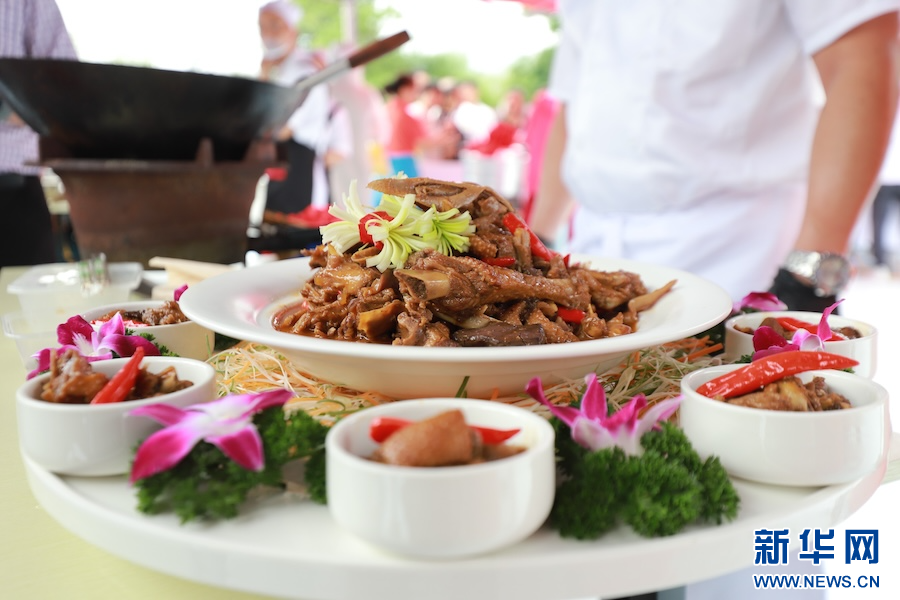 “我们特别注重突出食材本味。”大余全嘉福酒店主厨谢翔边操作边介绍,“用土陶罐蒸制,既保留鹅肉鲜嫩,又能让鹅肉更加入味。”现场香气四溢,引得围观游客纷纷驻足拍照。