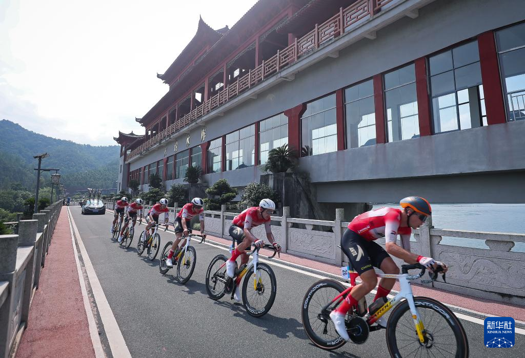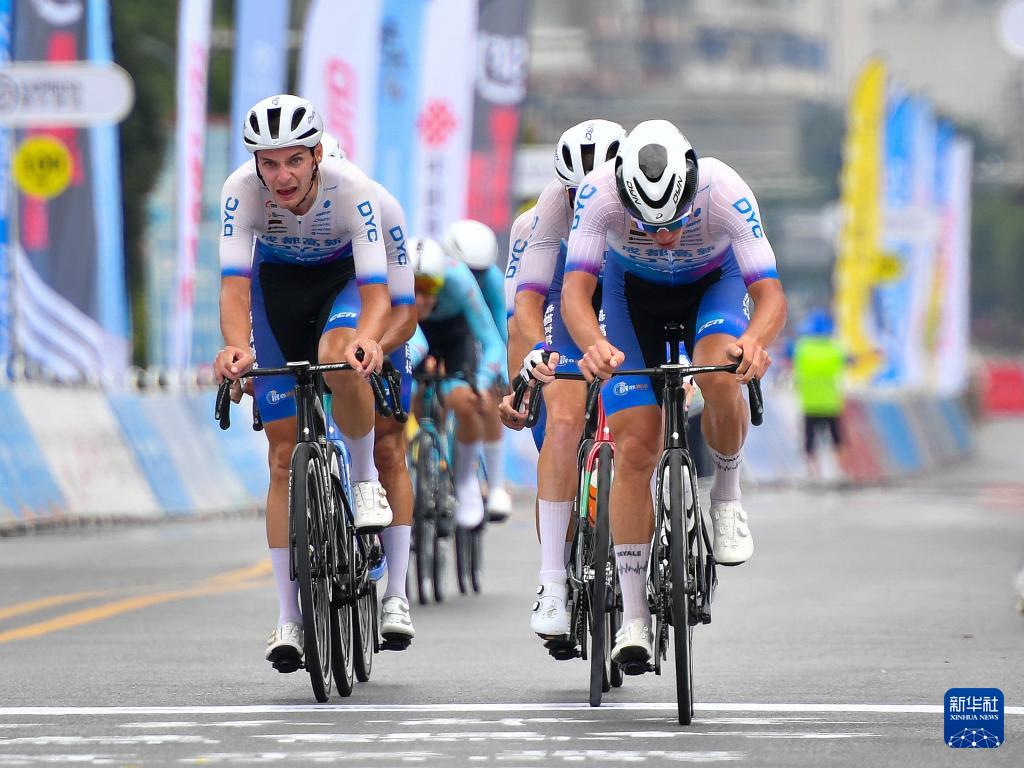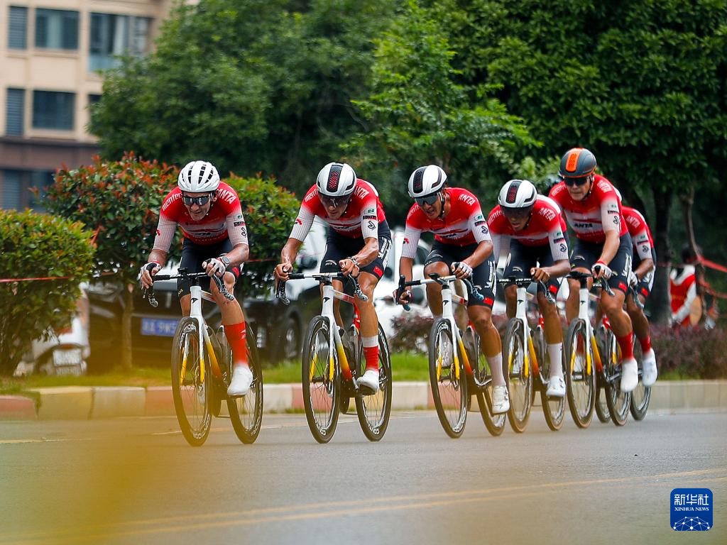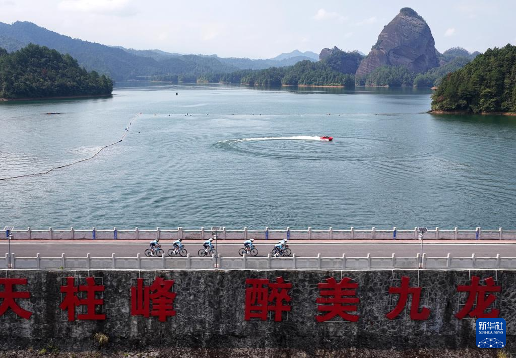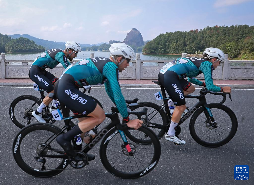 当日,第十三届环鄱阳湖国际自行车大赛第四赛段比赛在江西省宜春市铜鼓县举行。此赛段为团体计时赛,中国成都DYC洲际车队获得赛段团体第一。新华社发(许南平摄)pagebreak