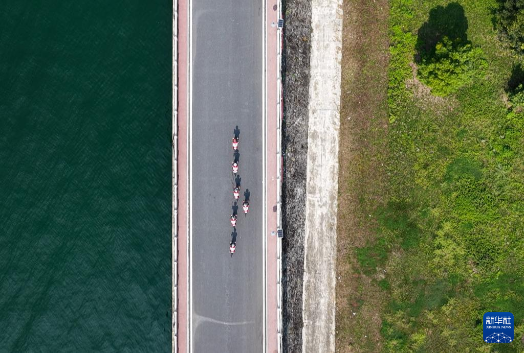 9月18日,参赛选手在比赛中骑行(无人机照片)。新华社发(许南平摄)
