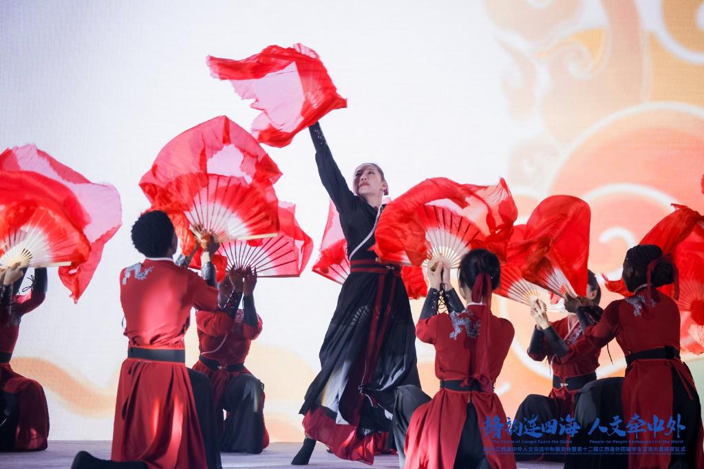 本次中秋联欢会分为“赣水相逢”“艺韵互赏”“筑梦赣鄱”“逐光同行”四个篇章,中外学生登上舞台,以形式多样的精彩节目,展现中外文化的交融互鉴。