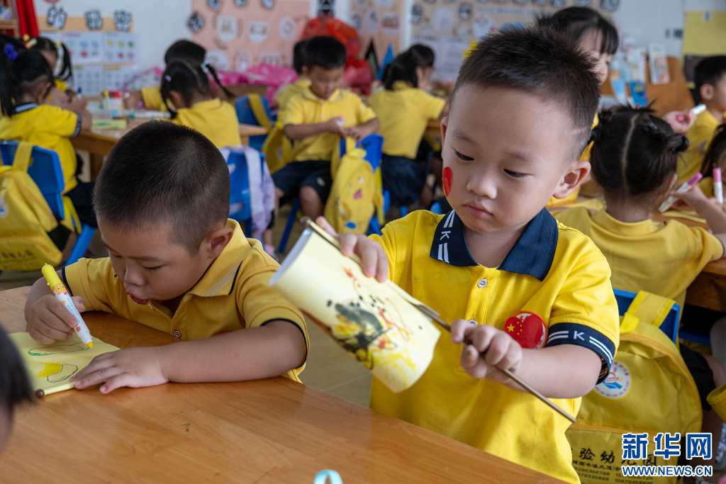 升国旗、唱红歌、长卷绘画、才艺表演……国庆将至,江西省余干县实验幼儿园等学校开展“童画印童心 ‘童’绘中国梦”主题活动。师生们用手中的画笔,勾勒出对祖国的爱,共同迎接国庆、中秋佳节的到来。(韩海建)