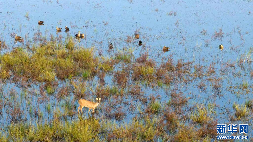 麂影掠过鸟羽,湖水映照蓝天。在这里,每一帧同框皆为对自然的礼赞,每一次振翅、每一步涉水都是吹响绿色发展的铿锵号角。(郑文斌、汪顺英)