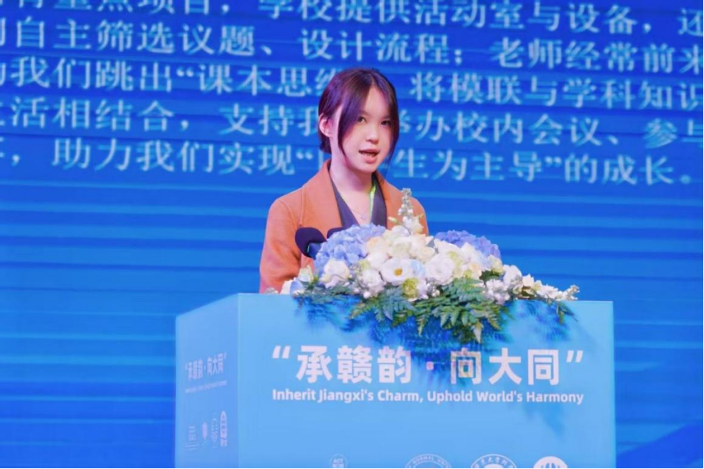 江西师大附中滨江校区内,来自全球40多所学校的青年代表在外交模拟舞台上,以世界眼光探讨人类共同议题。