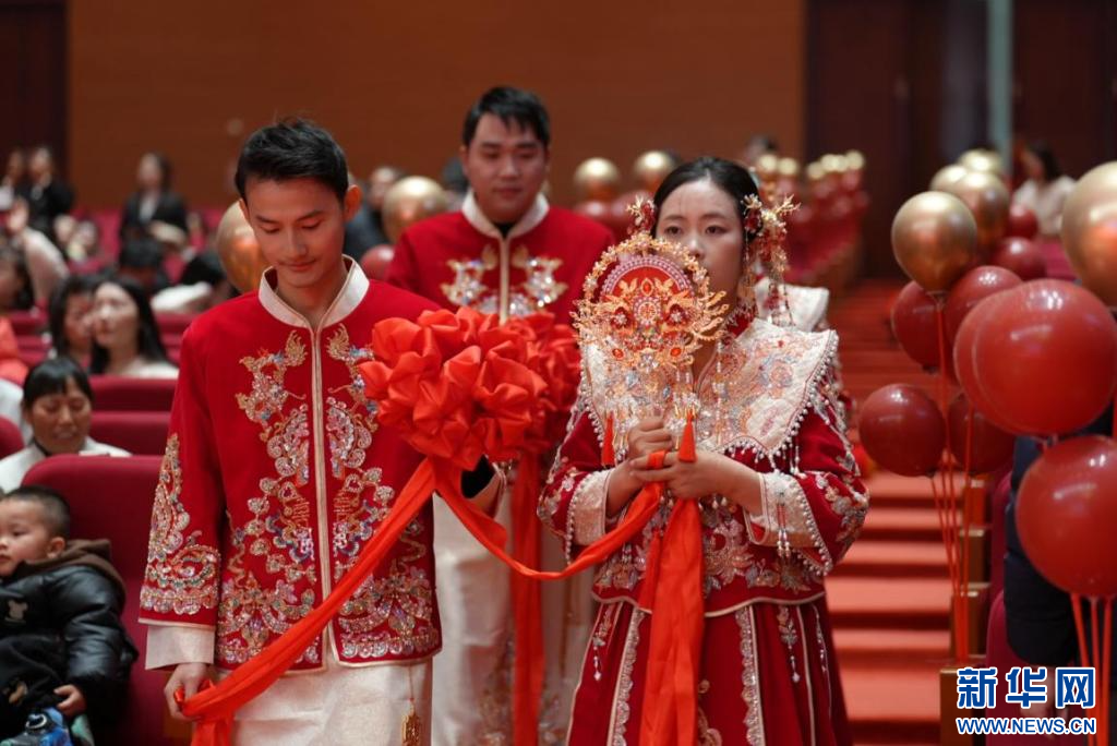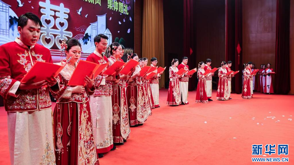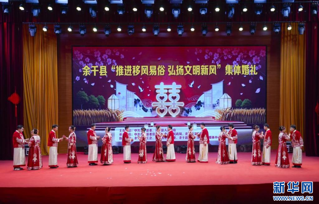 近日,一场以“推进移风易俗 弘扬文明新风”为主题的集体婚礼在江西余干县举办。9对来自不同行业、不同岗位的新人身着传统婚礼服饰,行拜天地、结发之礼。传统婚礼仪式依次进行,让现场所有人感受到浪漫的中式婚礼氛围,共同见证新人们喜结连理的幸福瞬间。