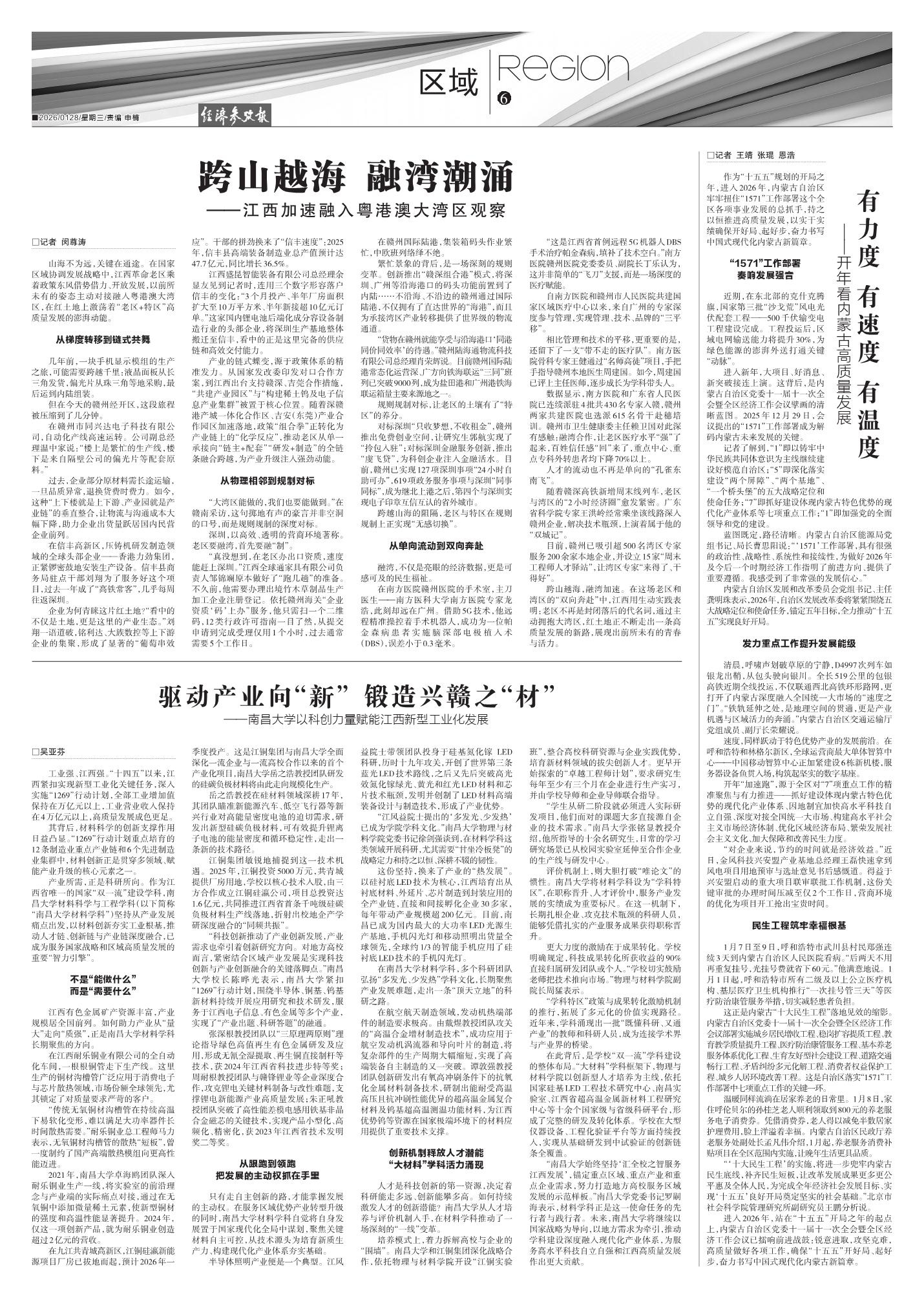 跨山越海,融湾加速。在这场老区和湾区的“双向奔赴”中,江西用生动实践表明:老区不再是封闭落后的代名词,通过主动拥抱大湾区,红土地正不断走出一条高质量发展的新路,展现出前所未有的青春与活力。(记者闵尊涛)