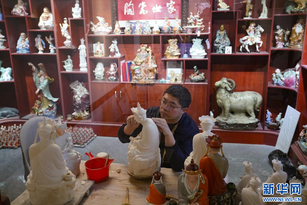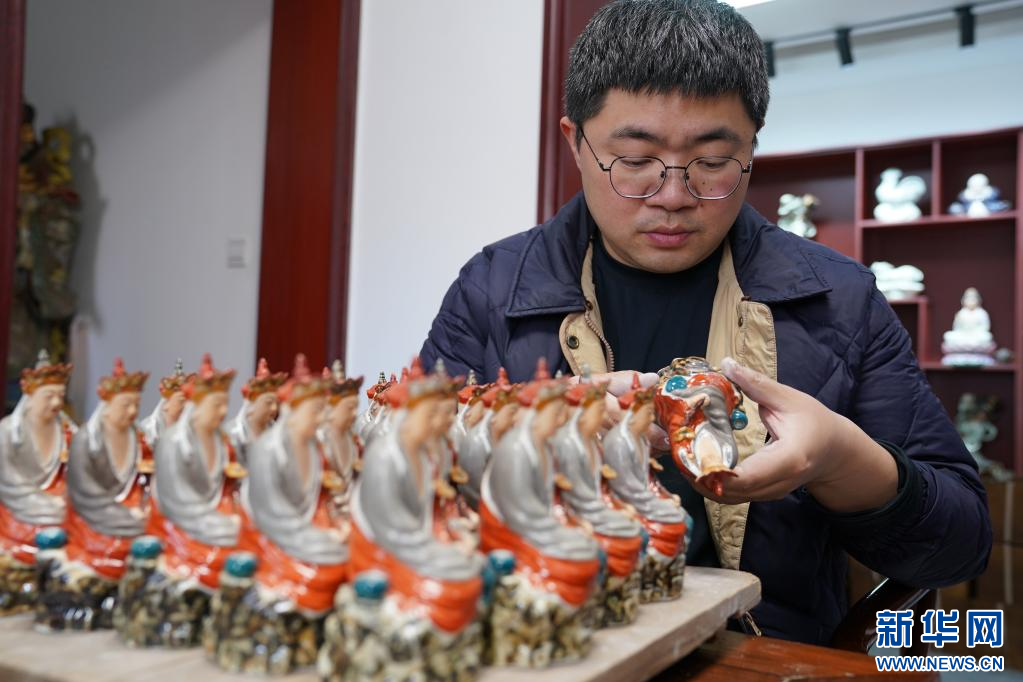 36岁的曾锐是“瓷雕曾”第四代传人,2011年他回家跟随父亲研习制瓷,逐步掌握各类瓷雕技法。2023年“无语佛”爆火后,他成立工作室复刻原作,并结合现代设计开发文创等周边产品。在曾锐看来,传统是根,留住经典题材与技法的同时,用当代语言包装创新,才能让老艺术焕发新生。