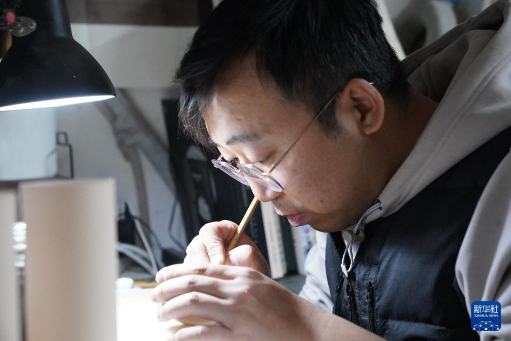 曹浪在工作室创作(3月11日摄)。新华社记者 周密 摄pagebreak