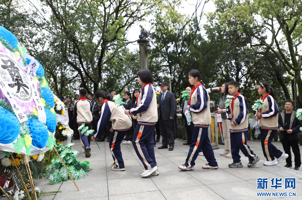 4月1日,江西余干县东山岭烈士陵园,余干县实验小学的同学们向革命先烈献花。新华网发 韩海建 摄